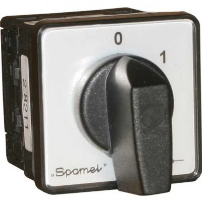 Łącznik Krzywkowy 10A, Przełącznik Dahlander'a dwubiegowy, mocowany do pulpitu czoło szare pokrętło czarne o numerze katalogowym SK10-4.8390\P03 w kategorii Wyłączniki i rozłączniki obrotowe, Wyłączniki, rozłączniki. Produkt wyprodukowany przez markę SPAMEL.