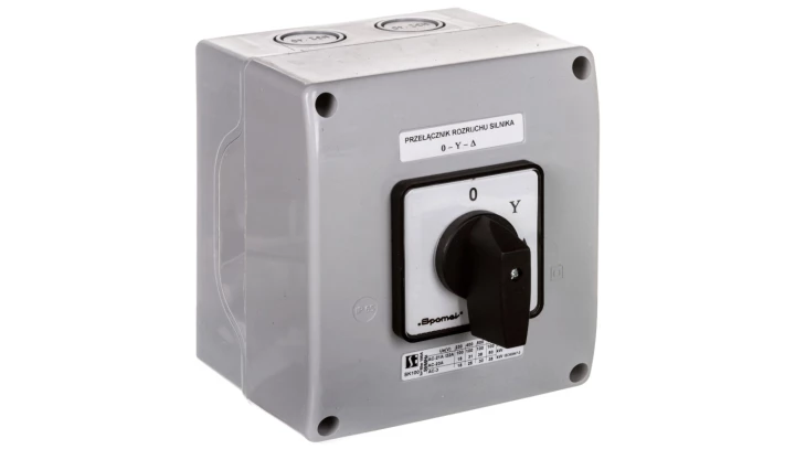 Łącznik Krzywkowy 100A, Przełącznik rozruchowy trójfazowy (0,Y,A), w obudowie OB18, o numerze katalogowym SK100-4.831\OB18 w kategorii Wyłączniki i rozłączniki obrotowe, Wyłączniki, rozłączniki. Produkt wyprodukowany przez markę SPAMEL.