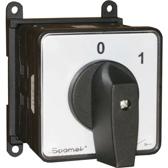 Łącznik Krzywkowy 63A, Rozłącznik 0-1 (3 - biegunowy), mocowanie bazo szynowe czoło żółto szare pokrętło czerwone o numerze katalogowym SK63-2.8211\BS04 w kategorii Wyłączniki i rozłączniki obrotowe, Wyłączniki, rozłączniki. Produkt wyprodukowany przez markę SPAMEL.