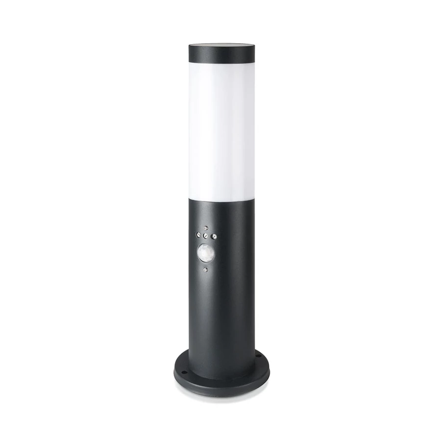 SŁUPEK OGRODOWY Z PIR / OBUDOWA: STAL NIERDZEWNA / WYSOKOŚĆ: 45CM / GNIAZDO: E27 / IP44 / KOLOR: CZA