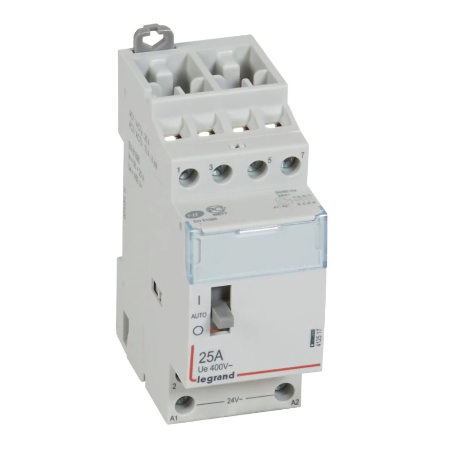 Stycznik modułowy SM 425 25A 24V 4NO z manipulatorem o numerze katalogowym 412517 w kategorii Styczniki instalacyjne, Styczniki. Produkt wyprodukowany przez markę LEGRAND, seria SM400.