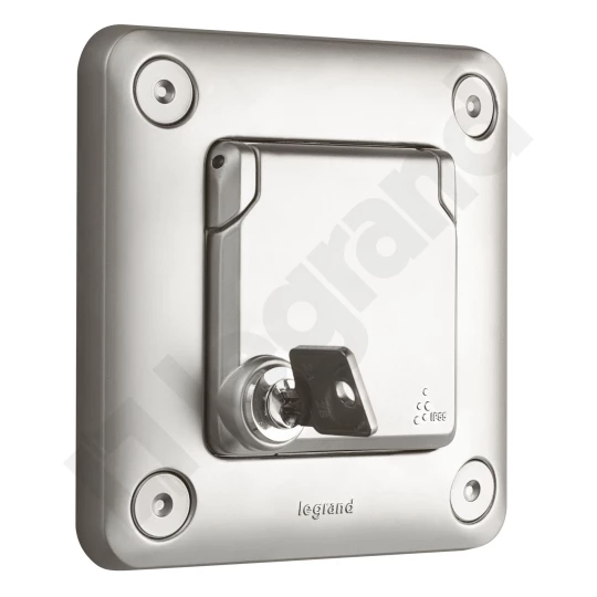 SOLIROC MODUŁ CHROM MAT GNIAZDO 1X Z/U Z KLAPKĄ IP55 BLOKADA NA KLUCZ ZACISKI SPRĘŻYNOWE 16A 250V