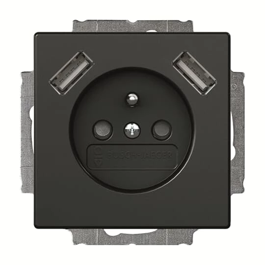 SOLO/ FUTURE MODUŁ CZARNY MAT GNAZDO 1X Z/U Z ŁADOWARKĄ 2X USB 230V ZACISKI SPRĘŻYNOWE 16A 250V