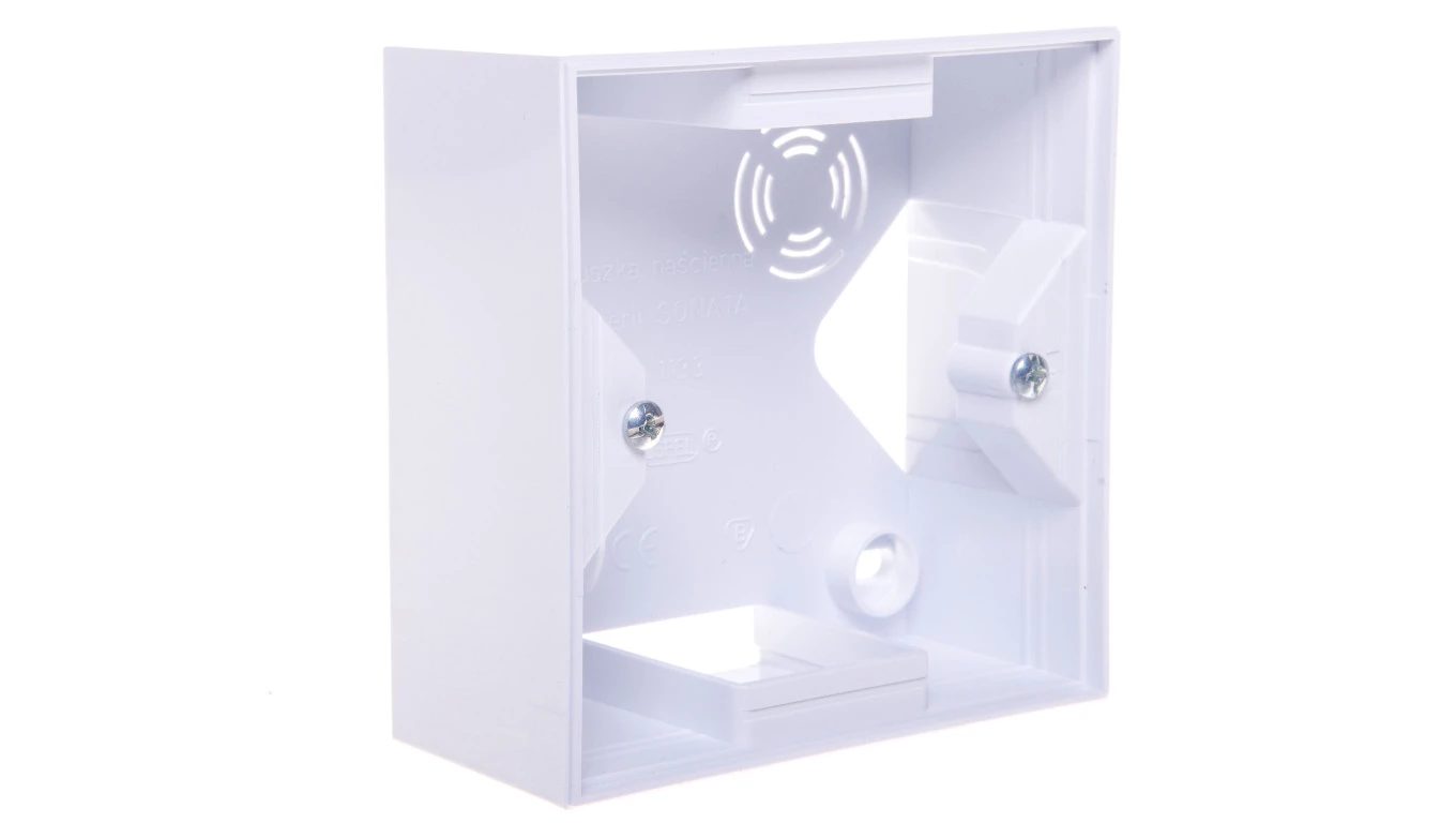 Puszka naścienna do serii SONATA pojedyncza, biały SONATA o numerze katalogowym PNP-1R/00 w kategorii Puszki natynkowe, Puszki instalacyjne. Produkt wyprodukowany przez markę OSPEL, seria SONATA.