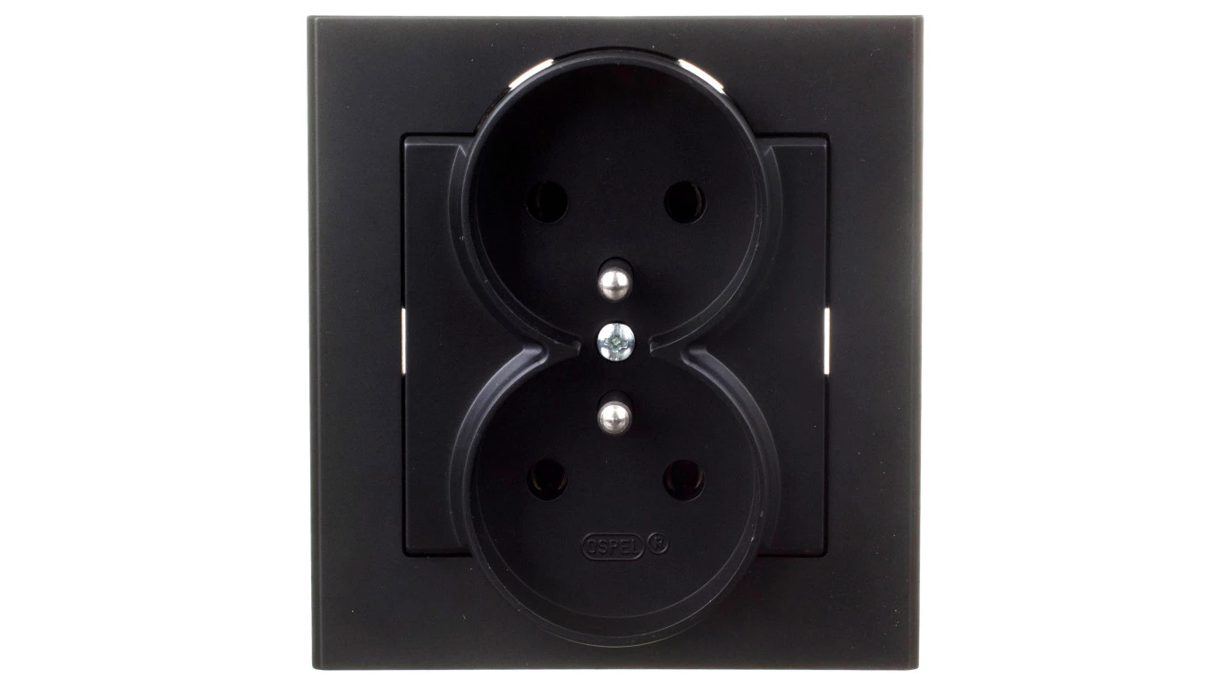 Gniazdo podwójne z uziemieniem, czarny metalik SONATA o numerze katalogowym GP-2RZ/33 w kategorii Gniazda podtynkowe, Gniazda instalacyjne. Produkt wyprodukowany przez markę OSPEL, seria SONATA.