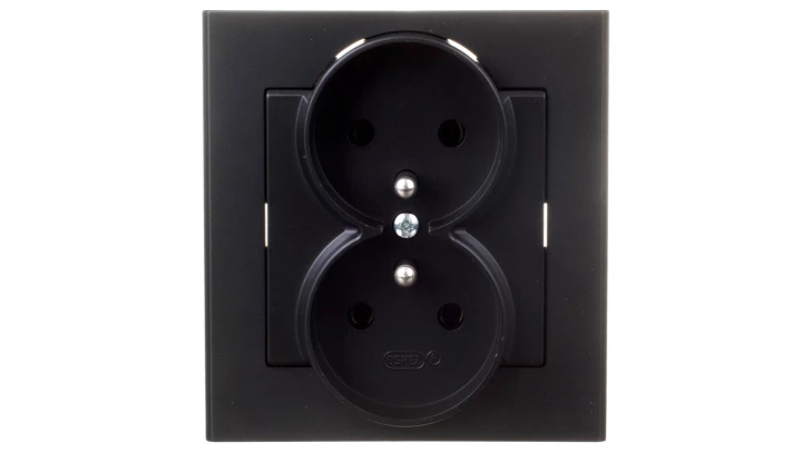 SONATA CZARNY METALIK GNIAZDO 2X Z/U ZACISKI ŚRUBOWE 16A 250V