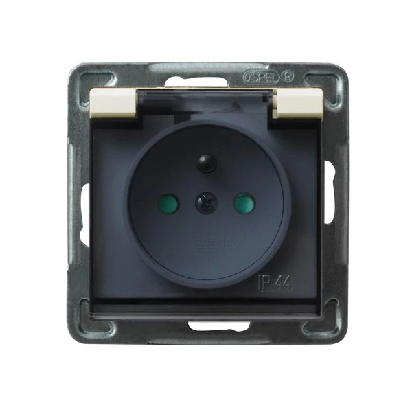Simon 54 Gniazdo bryzgoszczelne z/u IP44 z klapką transparentną antracyt DGZ1BZ.01/48A