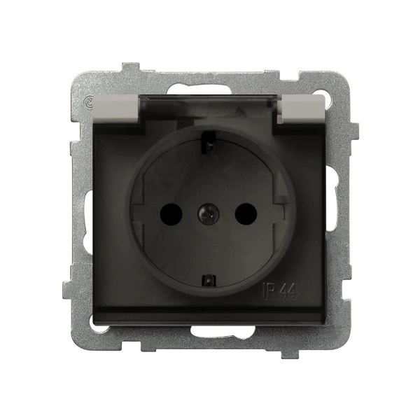SONATA Gniazdo bryzgoszczelne z uziemieniem schuko IP-44 wieczko przezroczyste kaszmir GPH-1RS/m/82/d