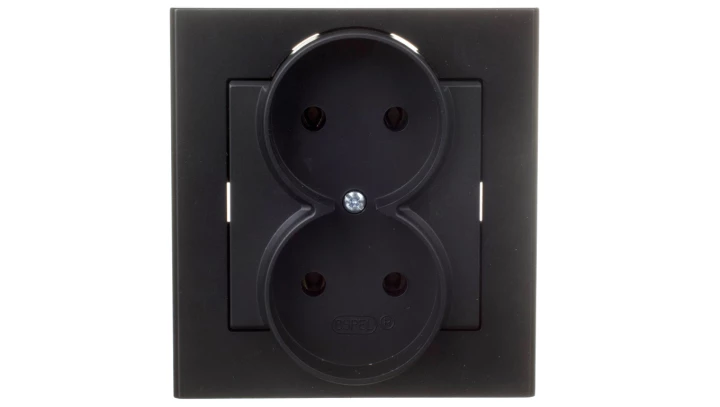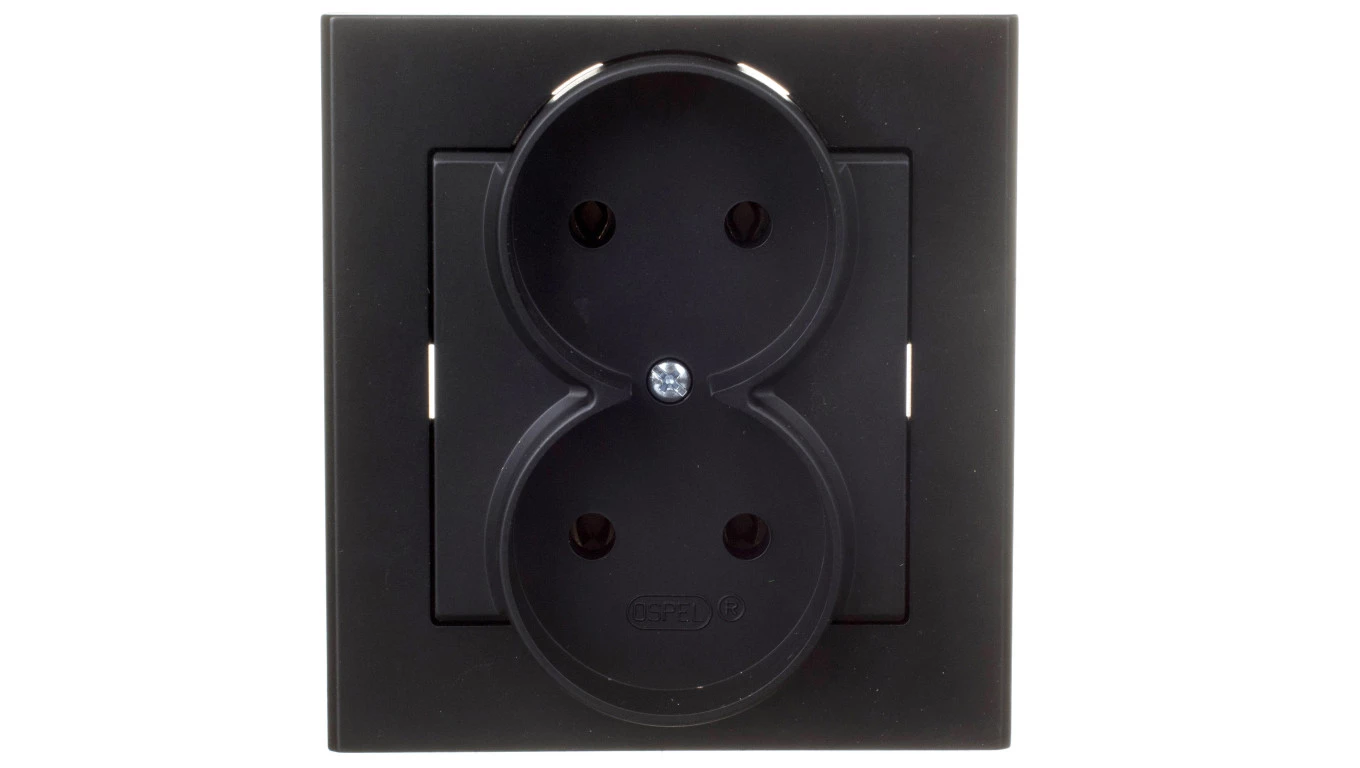 Gniazdo podwójne, czarny metalik SONATA o numerze katalogowym GP-2R/33 w kategorii Gniazda podtynkowe, Gniazda instalacyjne. Produkt wyprodukowany przez markę OSPEL, seria SONATA.