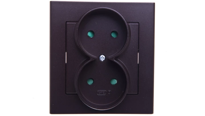 Gniazdo podwójne z przesłonami torów prądowych, czekoladowy metal SONATA o numerze katalogowym GP-2RP/40 w kategorii Gniazda podtynkowe, Gniazda instalacyjne. Produkt wyprodukowany przez markę OSPEL, seria SONATA.