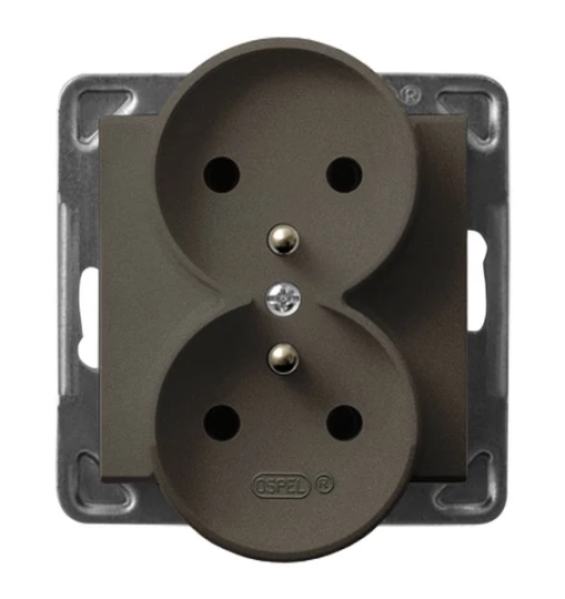 Gniazdo podwójne z uziemieniem, czekoladowy metal SONATA o numerze katalogowym GP-2RRZ/M/40 w kategorii Gniazda podtynkowe, Gniazda instalacyjne. Produkt wyprodukowany przez markę OSPEL, seria SONATA.