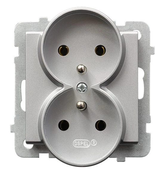 Gniazdo podwójne z uziemieniem, srebro mat SONATA o numerze katalogowym GP-2RRZ/M/38 w kategorii Gniazda podtynkowe, Gniazda instalacyjne. Produkt wyprodukowany przez markę OSPEL, seria SONATA.