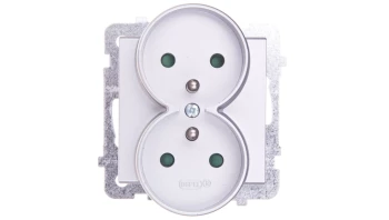 KARO MODUŁ SREBRNY PERŁOWY GNIAZDO 2X Z/U Z PRZESŁONAMI ZACISKI ŚRUBOWE 16A 250V
