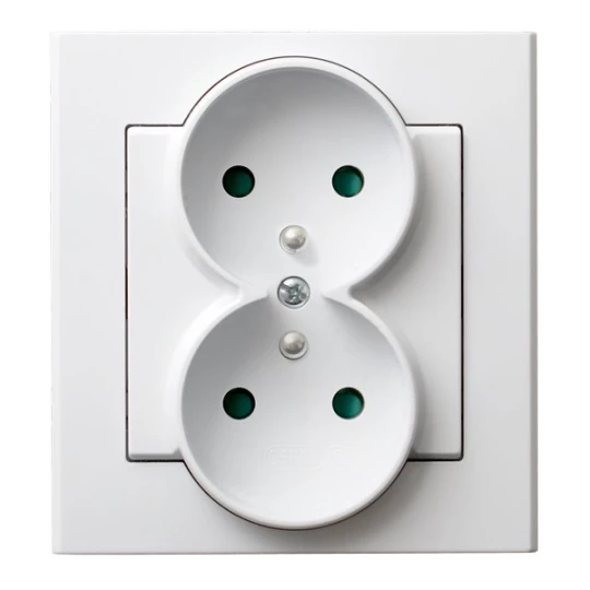 SONATA Gniazdo podwójne z uziemieniem z przesłonami torów prądowych, kompletne z ramką biały mat GP-2RZP/75