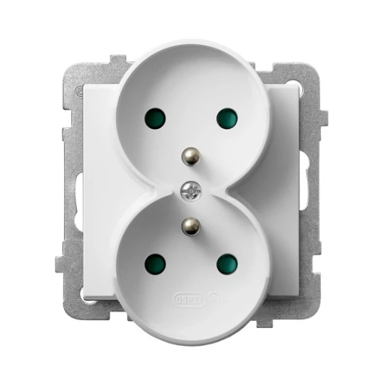 SONATA Gniazdo podwójne z uziemieniem z przesłonami torów prądowych, moduł bez ramki biały mat GP-2RRZP/m/75