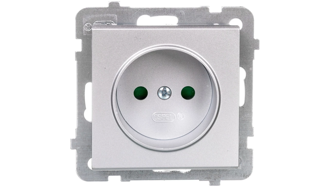 Gniazdo pojedyncze z przesłonami torów prądowych, srebro mat SONATA o numerze katalogowym GP-1RP/M/38 w kategorii Gniazda podtynkowe, Gniazda instalacyjne. Produkt wyprodukowany przez markę OSPEL, seria SONATA.