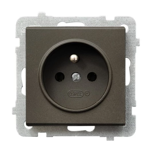 Gniazdo pojedyncze z uziemieniem, czekoladowy metal SONATA o numerze katalogowym GP-1RZ/M/40 w kategorii Gniazda podtynkowe, Gniazda instalacyjne. Produkt wyprodukowany przez markę OSPEL, seria SONATA.