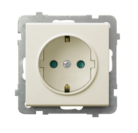 Gniazdo pojedyncze z uziemieniem schuko z przesłonami torów prądowych, ecru SONATA o numerze katalogowym GP-1RSP/M/27 w kategorii Gniazda podtynkowe, Gniazda instalacyjne. Produkt wyprodukowany przez markę OSPEL, seria SONATA.