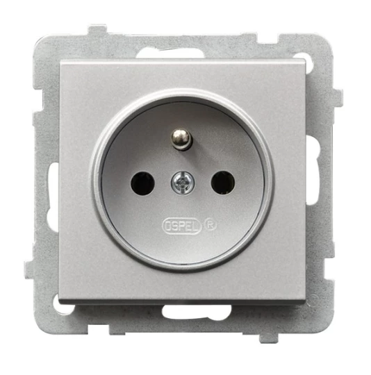 Gniazdo pojedyncze z uziemieniem, srebro mat SONATA o numerze katalogowym GP-1RZ/M/38 w kategorii Gniazda podtynkowe, Gniazda instalacyjne. Produkt wyprodukowany przez markę OSPEL, seria SONATA.