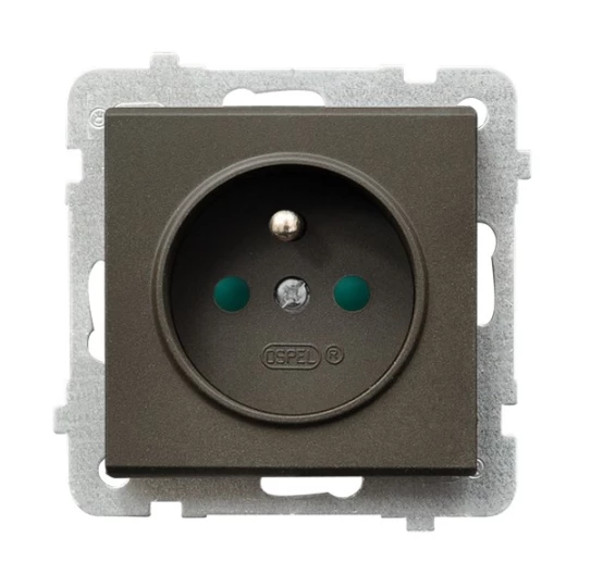 Gniazdo pojedyncze z uziemieniem z przesłonami torów prądowych, czekoladowy metal SONATA o numerze katalogowym GP-1RZP/M/40 w kategorii Gniazda podtynkowe, Gniazda instalacyjne. Produkt wyprodukowany przez markę OSPEL, seria SONATA.