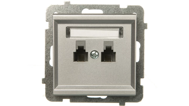 Gniazdo telefoniczne podwójne równoległe, srebro mat SONATA o numerze katalogowym GPT-2RR/M/38 w kategorii Gniazda teleinformacyjne, multimedialne, Łączniki i gniazda instalacyjne. Produkt wyprodukowany przez markę OSPEL, seria SONATA.