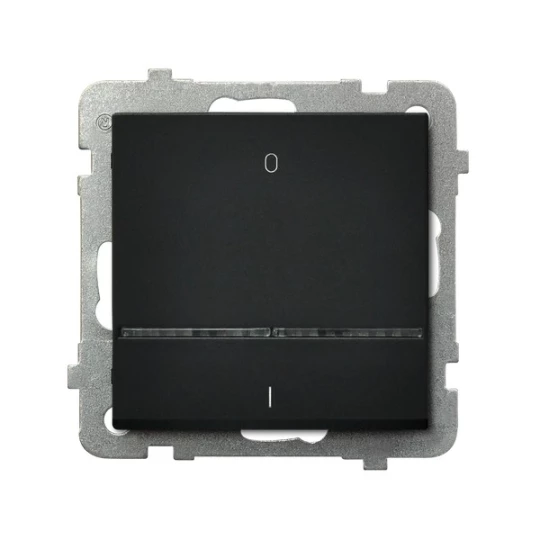 Łącznik dwubiegunowy z podświetleniem niebieskim, czarny metalik SONATA o numerze katalogowym ŁP-11RS/M/33 w kategorii Łączniki podtynkowe wielobiegunowe, Łączniki wielobiegunowe. Produkt wyprodukowany przez markę OSPEL, seria SONATA.