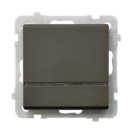 Łącznik jednobiegunowy z podświetleniem niebieskim, czekoladowy metal SONATA o numerze katalogowym ŁP-1RS/M/40 w kategorii Łączniki podtynkowe jednobiegunowe, Łączniki jednobiegunowe. Produkt wyprodukowany przez markę OSPEL, seria SONATA.