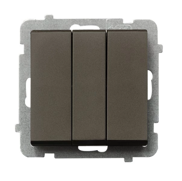 Łącznik potrójny, czekoladowy metal SONATA o numerze katalogowym ŁP-13R/M/40 w kategorii Łączniki podtynkowe wielobiegunowe, Łączniki wielobiegunowe. Produkt wyprodukowany przez markę OSPEL, seria SONATA.