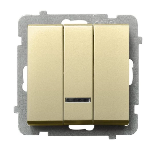 Łącznik potrójny z podświetleniem niebieskim, szampański złoty SONATA o numerze katalogowym ŁP-13RS/M/39 w kategorii Łączniki podtynkowe wielobiegunowe, Łączniki wielobiegunowe. Produkt wyprodukowany przez markę OSPEL, seria SONATA.