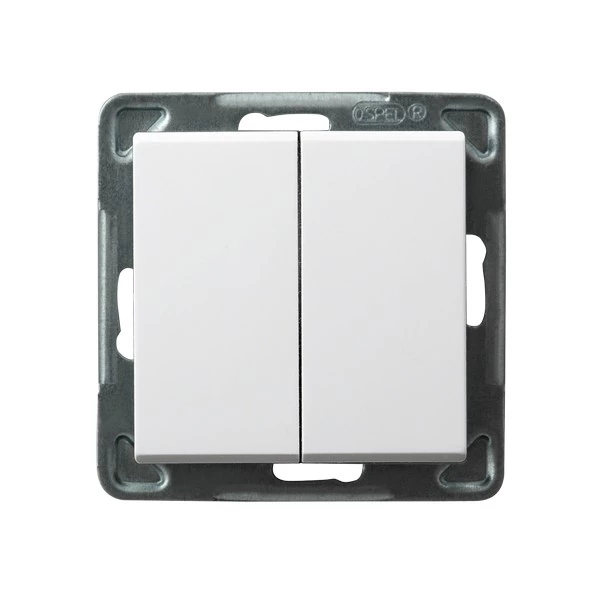 Łącznik podwójny schodowy, biały SONATA o numerze katalogowym ŁP-10R/M/00 w kategorii Łączniki podtynkowe schodowe, Łączniki schodowe. Produkt wyprodukowany przez markę OSPEL, seria SONATA.