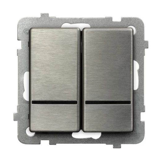 Łącznik dwugrupowy świecznikowy z podświetleniem niebieskim, stal inox SONATA o numerze katalogowym ŁP-2RMS/M/37 w kategorii Łączniki podtynkowe świecznikowe, Łączniki świecznikowe. Produkt wyprodukowany przez markę OSPEL, seria SONATA.