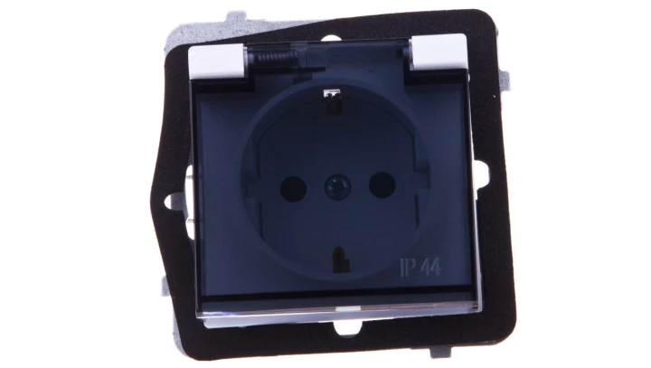 Simon 54 Gniazdo bryzgoszczelne z/u IP44 z klapką transparentną antracyt DGZ1BZ.01/48A