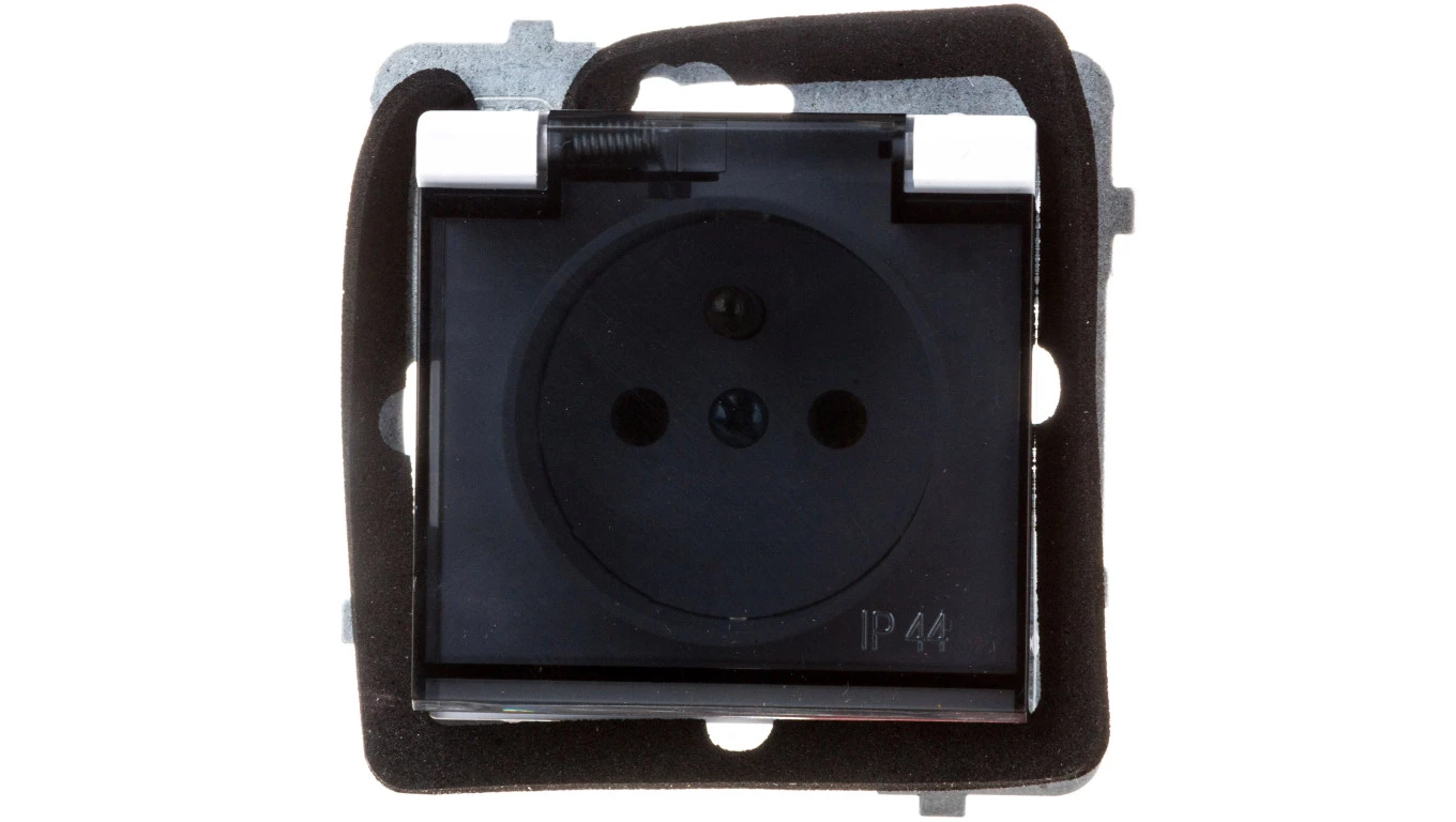 Simon 54 Gniazdo bryzgoszczelne z/u IP44 z klapką transparentną antracyt DGZ1BZ.01/48A