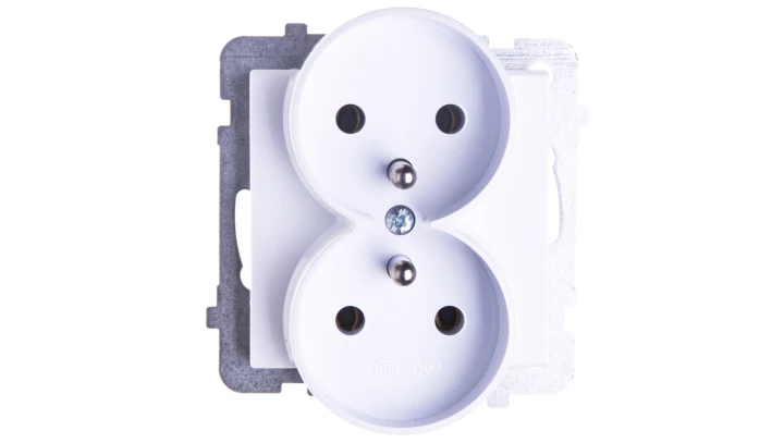 Gniazdo podwójne z uziemieniem, biały SONATA o numerze katalogowym GP-2RRZ/M/00 w kategorii Gniazda podtynkowe, Gniazda instalacyjne. Produkt wyprodukowany przez markę OSPEL, seria SONATA.
