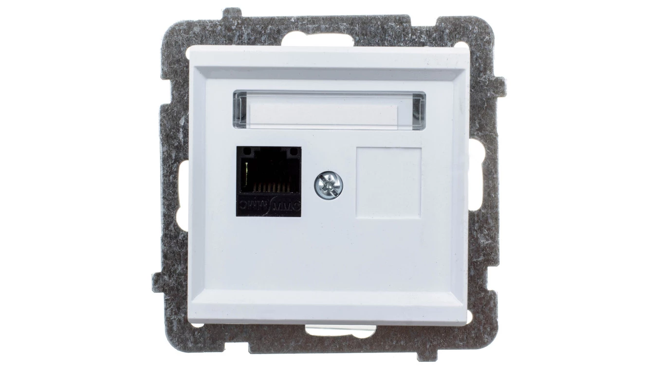 Gniazdo komputerowe pojedyncze, kat.5e MMC, biały SONATA o numerze katalogowym GPK-1R/K/M/00 w kategorii Gniazda teleinformacyjne, multimedialne, Łączniki i gniazda instalacyjne. Produkt wyprodukowany przez markę OSPEL, seria SONATA.