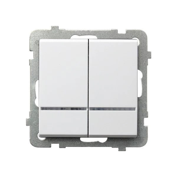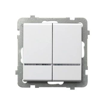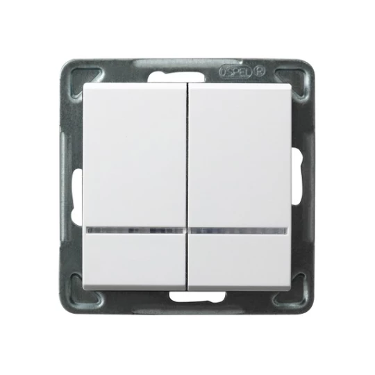 Łącznik dwugrupowy świecznikowy z podświetleniem pomarańczowym, biały SONATA o numerze katalogowym ŁP-2RS/M/00 w kategorii Łączniki podtynkowe świecznikowe, Łączniki świecznikowe. Produkt wyprodukowany przez markę OSPEL, seria SONATA.