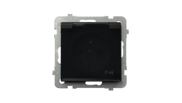 Gniazdo bryzgoszczelne z uziemieniem IP-44, czarny metalik SONATA o numerze katalogowym GPH-1RZ/M/33/D w kategorii Gniazda podtynkowe, Gniazda instalacyjne. Produkt wyprodukowany przez markę OSPEL, seria SONATA.
