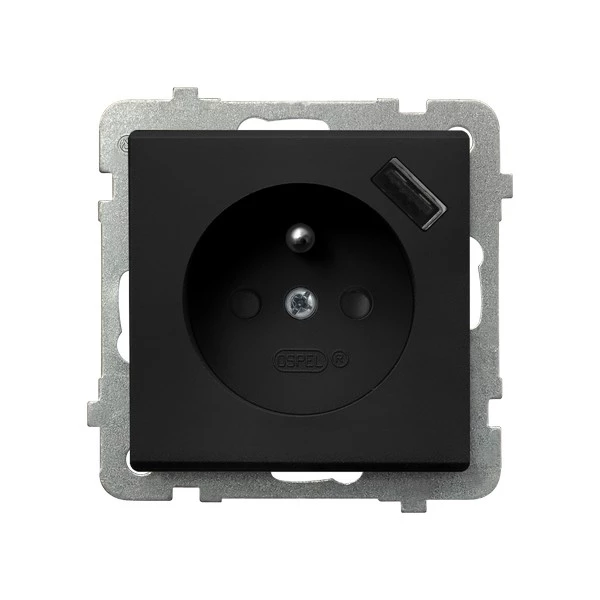 SONATA MODUŁ CZARNY METALIK GNIAZDO 1X Z/U Z PRZESŁONAMI ZACISKI SPRĘŻYNOWE + ŁADOWARKA USB