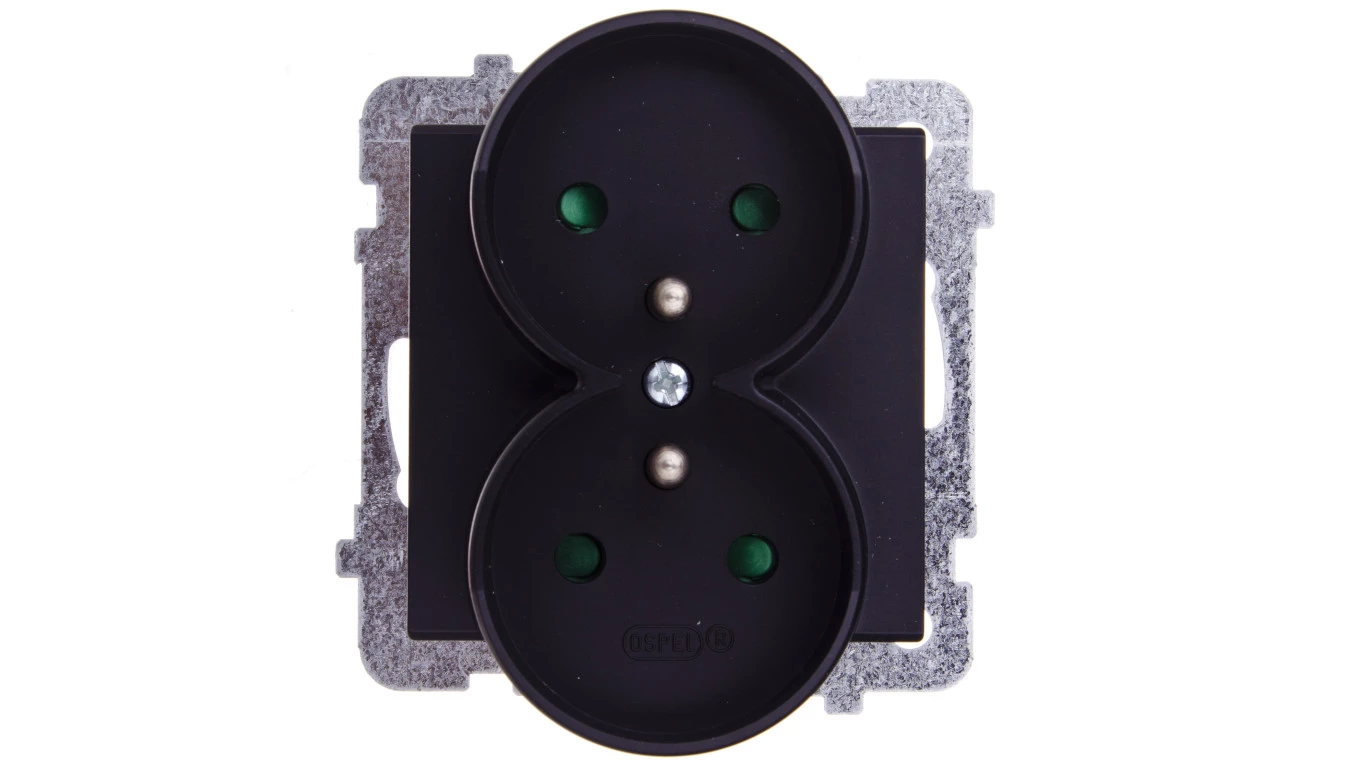 Gniazdo podwójne z uziemieniem z przesłonami torów prądowych, czarny metalik SONATA o numerze katalogowym GP-2RRZP/M/33 w kategorii Gniazda podtynkowe, Gniazda instalacyjne. Produkt wyprodukowany przez markę OSPEL, seria SONATA.