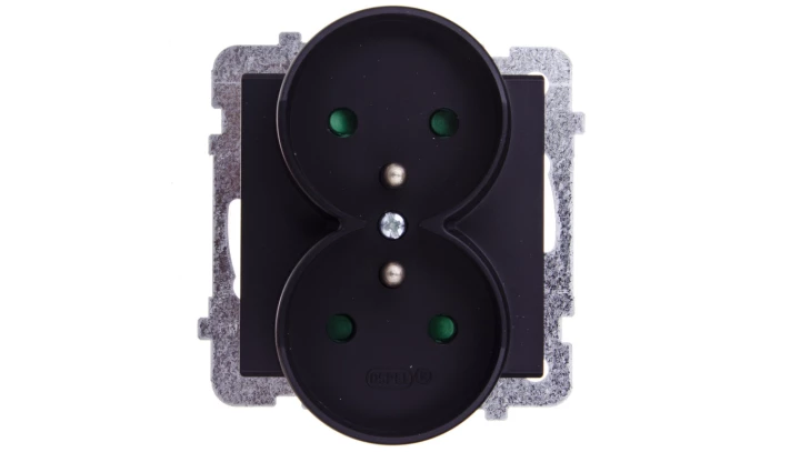 SONATA MODUŁ CZARNY METALIK GNIAZDO 2X Z/U Z PRZESŁONAMI ZACISKI ŚRUBOWE 16A 250V