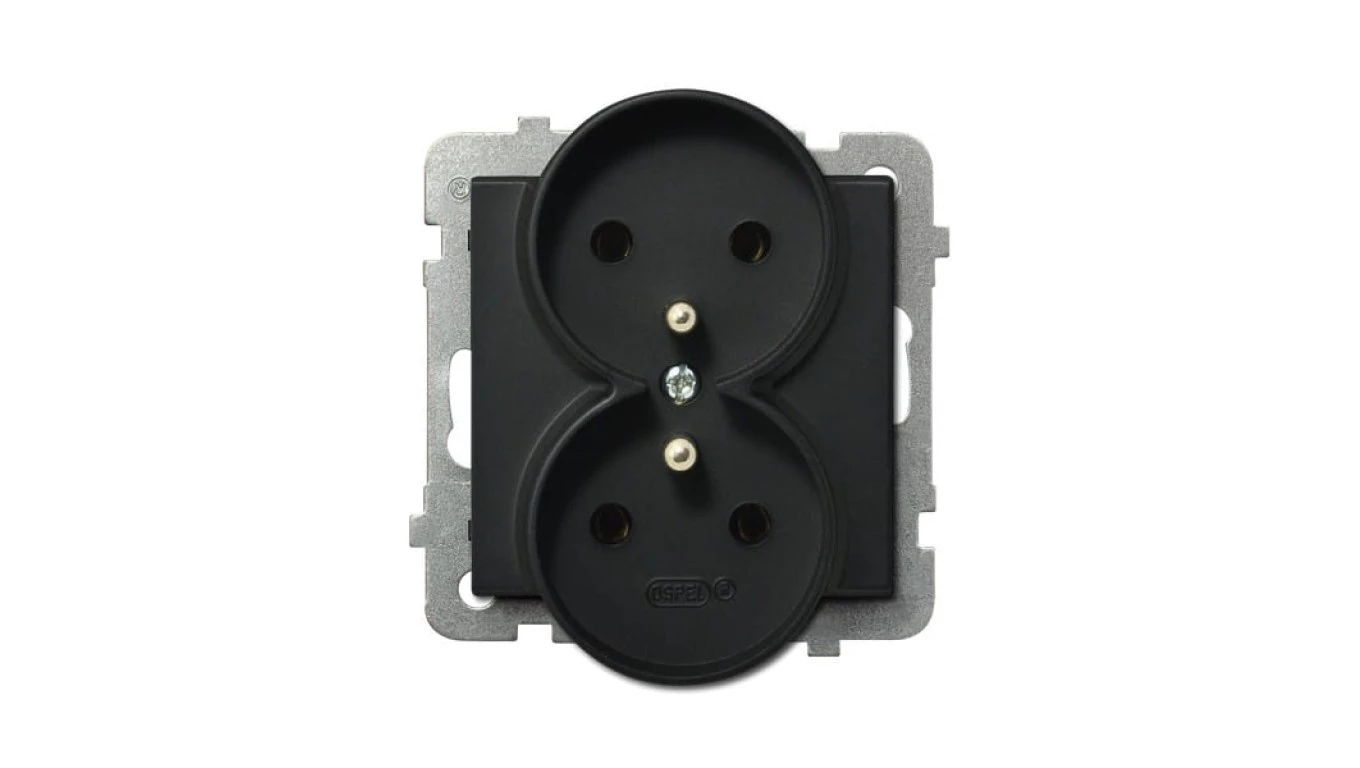 SONATA MODUŁ CZARNY METALIK GNIAZDO 2X Z/U ZACISKI ŚRUBOWE 16A 250V