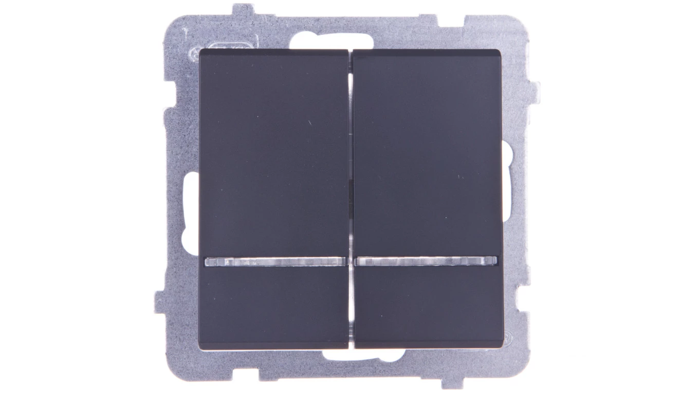 Łącznik dwugrupowy świecznikowy z podświetleniem niebieskim, czarny metalik SONATA o numerze katalogowym ŁP-2RS/M/33 w kategorii Łączniki podtynkowe świecznikowe, Łączniki świecznikowe. Produkt wyprodukowany przez markę OSPEL, seria SONATA.