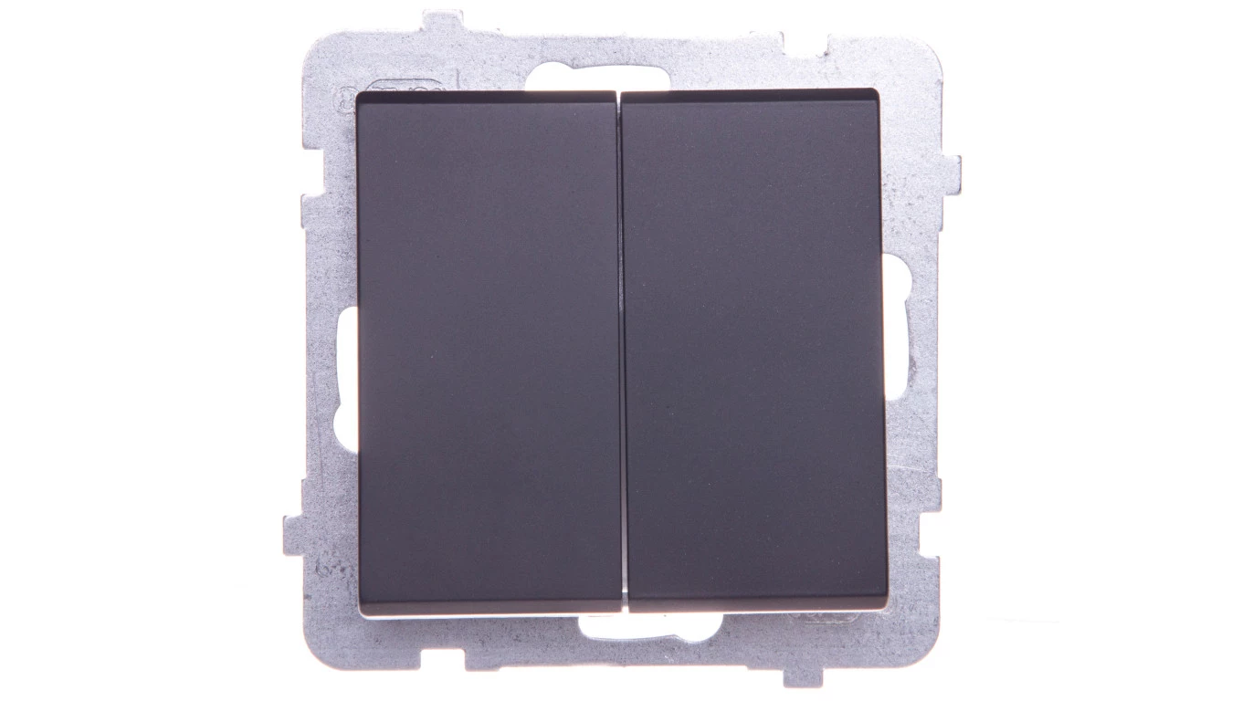 Łącznik podwójny zwierny, czarny metalik SONATA o numerze katalogowym ŁP-17R/M/33 w kategorii Łączniki podtynkowe wielobiegunowe, Łączniki wielobiegunowe. Produkt wyprodukowany przez markę OSPEL, seria SONATA.