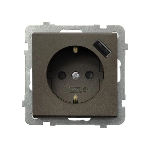 SONATA MODUŁ CZEKOLADOWY GNIAZDO 1X SCHUKO Z PRZESŁONAMI + ŁADOWARKA USB ZACISKI ŚRUBOWE 16A 250V