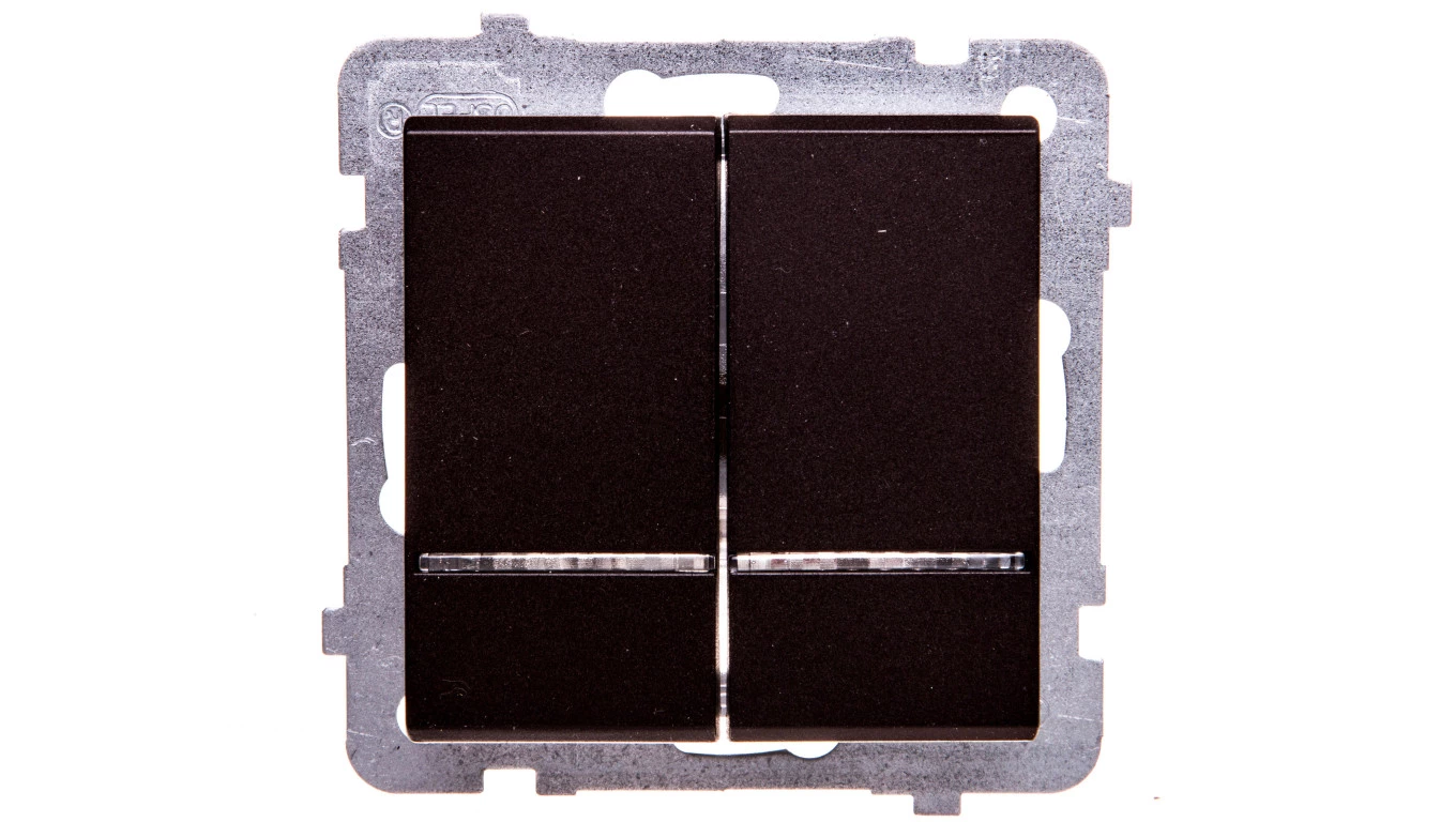 Łącznik dwugrupowy świecznikowy z podświetleniem niebieskim, czekoladowy metal SONATA o numerze katalogowym ŁP-2RS/M/40 w kategorii Łączniki podtynkowe świecznikowe, Łączniki świecznikowe. Produkt wyprodukowany przez markę OSPEL, seria SONATA.