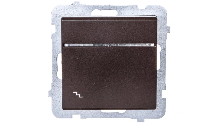 Łącznik schodowy z podświetleniem niebieskim, czekoladowy metal SONATA o numerze katalogowym ŁP-3RS/M/40 w kategorii Łączniki podtynkowe schodowe, Łączniki schodowe. Produkt wyprodukowany przez markę OSPEL, seria SONATA.
