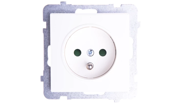 Simon 54 Gniazdo pojedyncze SCHUKO z/u 16A IP20 z przesłoną torów, szybkozłącza, białe DGSz1CZ.01/11