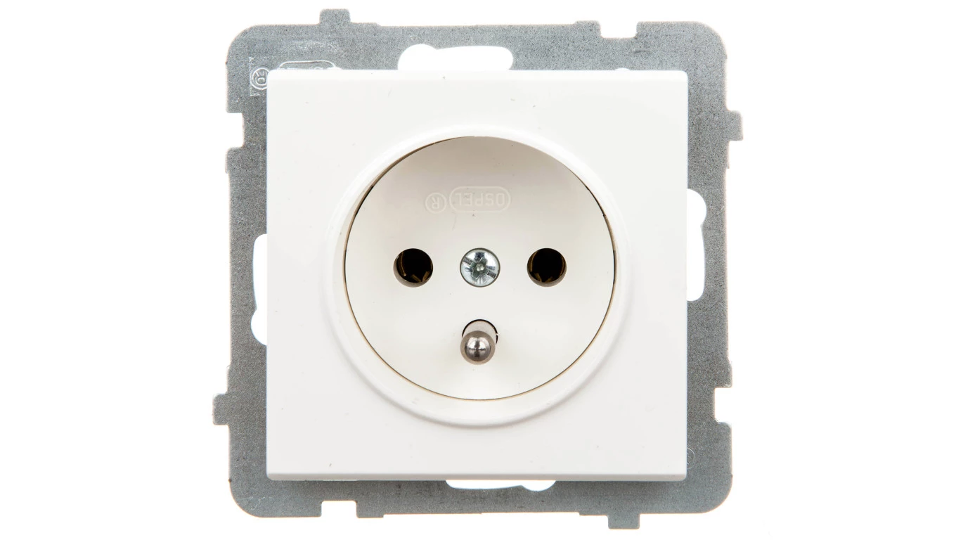 Gniazdo pojedyncze z uziemieniem, ecru SONATA o numerze katalogowym GP-1RZ/M/27 w kategorii Gniazda podtynkowe, Gniazda instalacyjne. Produkt wyprodukowany przez markę OSPEL, seria SONATA.
