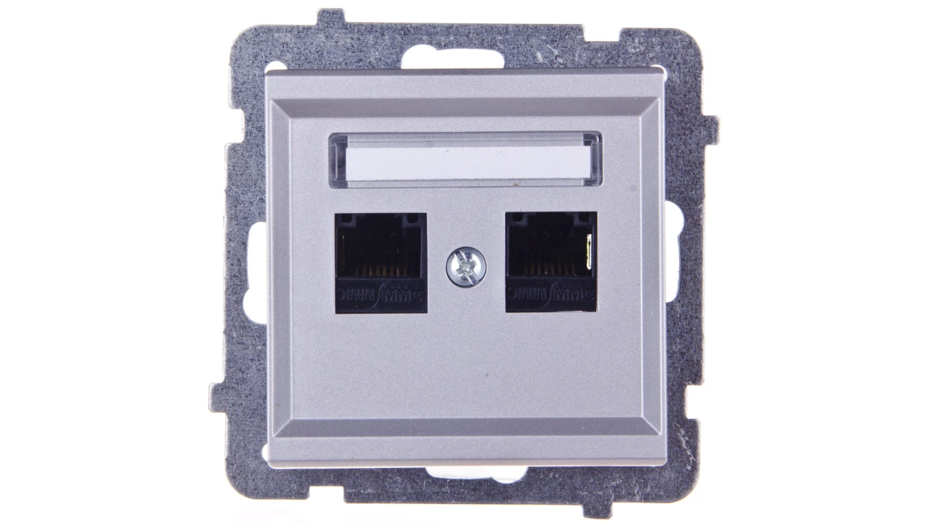 Gniazdo komputerowe podwójne, kat.5e MMC, srebro mat SONATA o numerze katalogowym GPK-2R/K/M/38 w kategorii Gniazda teleinformacyjne, multimedialne, Łączniki i gniazda instalacyjne. Produkt wyprodukowany przez markę OSPEL, seria SONATA.