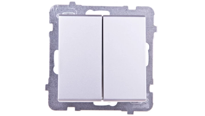 Łącznik dwugrupowy świecznikowy, srebro mat SONATA o numerze katalogowym ŁP-2R/M/38 w kategorii Łączniki podtynkowe świecznikowe, Łączniki świecznikowe. Produkt wyprodukowany przez markę OSPEL, seria SONATA.